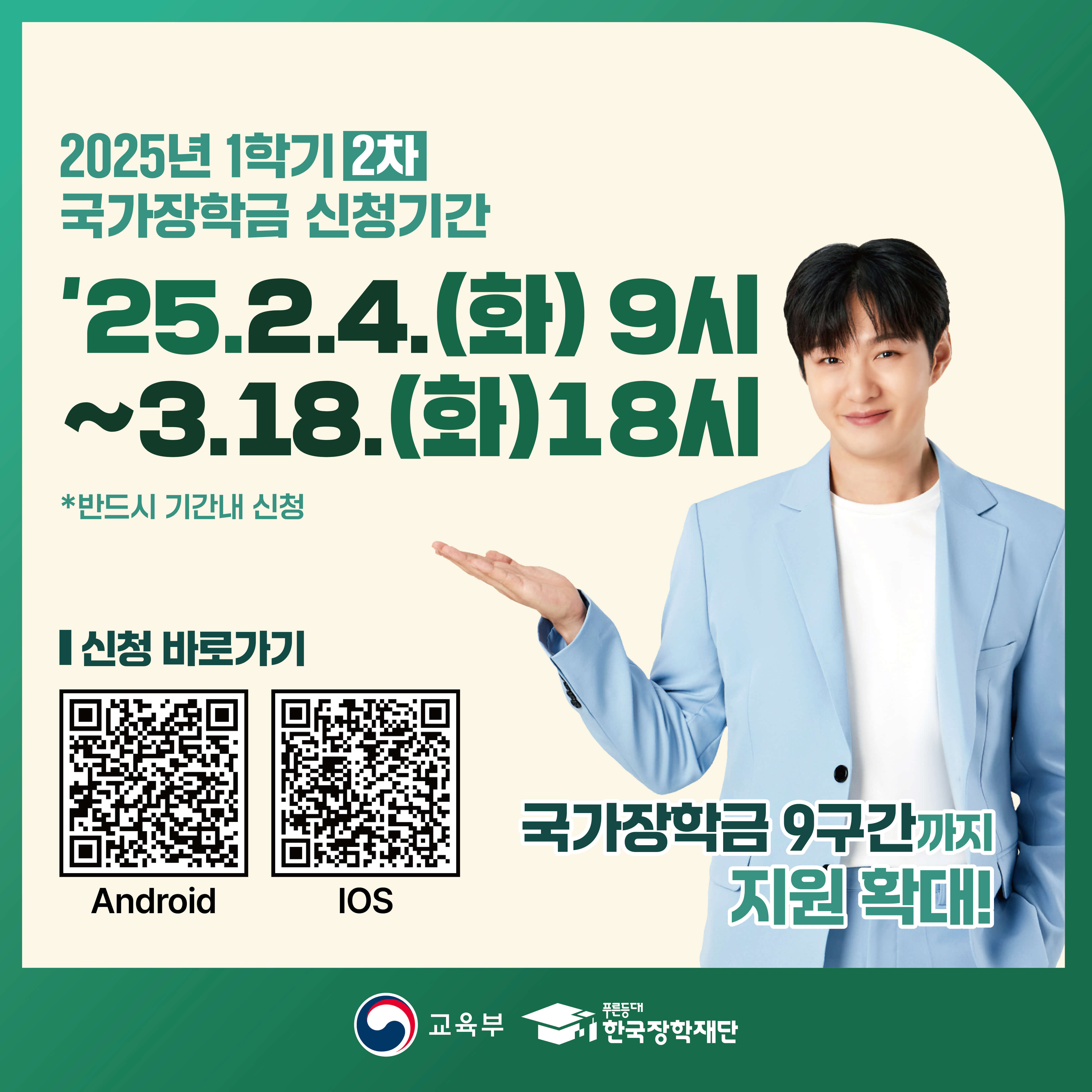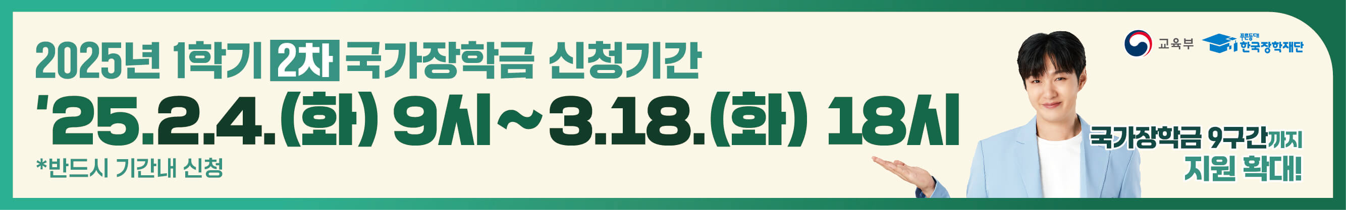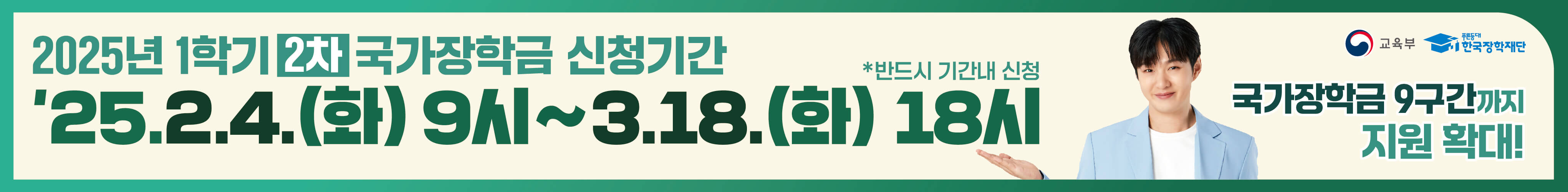 - 국가장학금 지원 확대 (8구간 이하 → 9구간 이하)